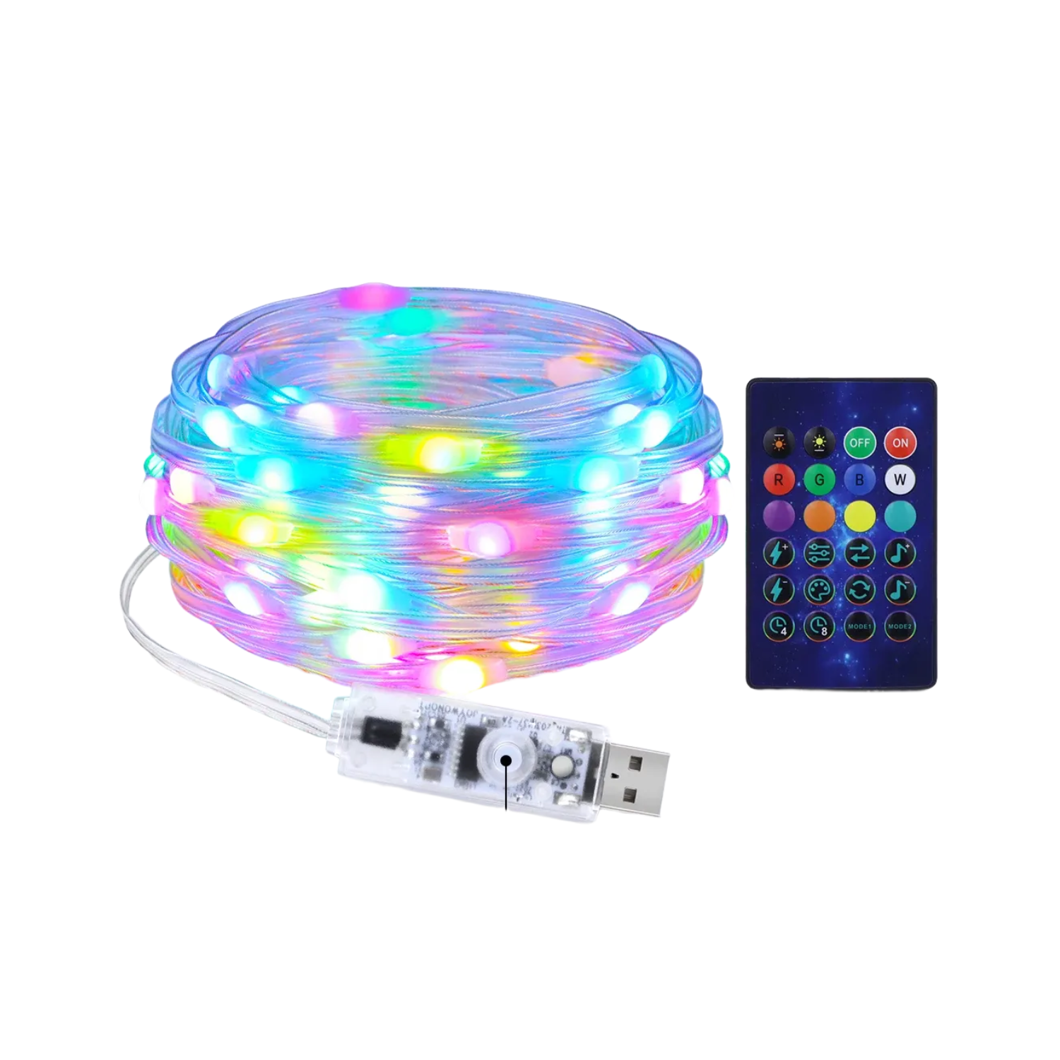Enhance your festive decor with our upgraded RGBW LED Christmas String Lights, featuring warm white lamp beads and a variety of colorful, adjustable lighting effects. Perfect for creating a magical holiday atmosphere, these lights offer smart control, music synchronization, and durable, weather-resistant design.