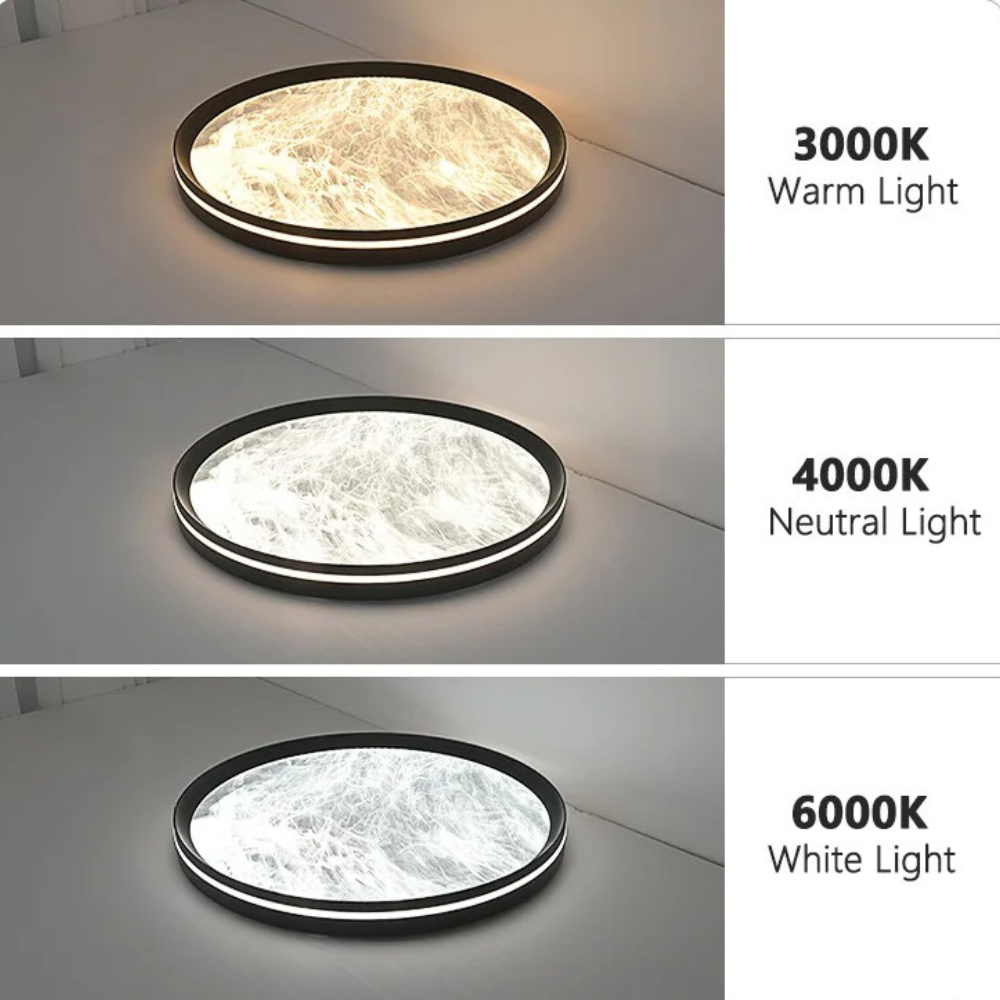 This contemporary LED ceiling light offers a versatile lighting solution for any room, providing comfortable and adaptable illumination. Its sleek design and multiple light temperature options create an inviting ambiance while prioritizing eye comfort.