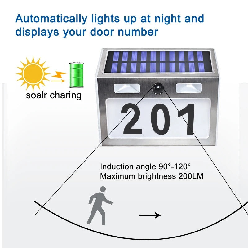 Customizable Solar House Number Light - Stainless Steel 200LM LED with Motion Sensor for Home Garden Door