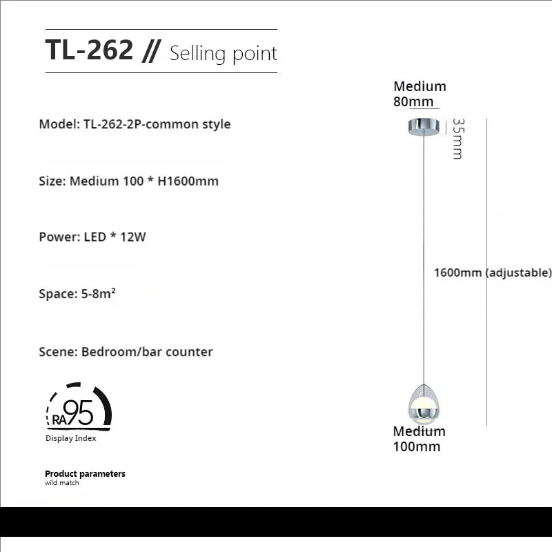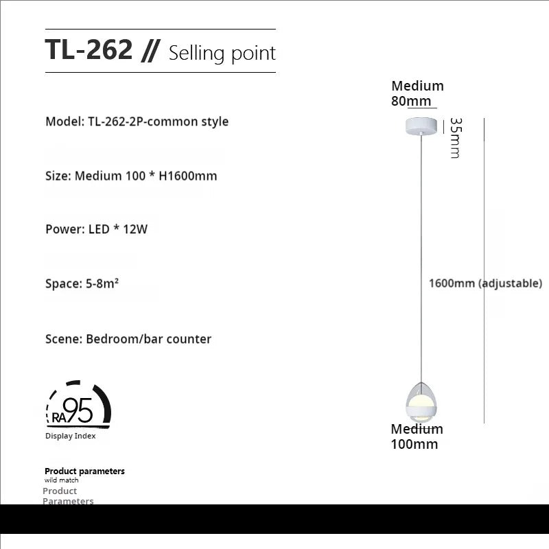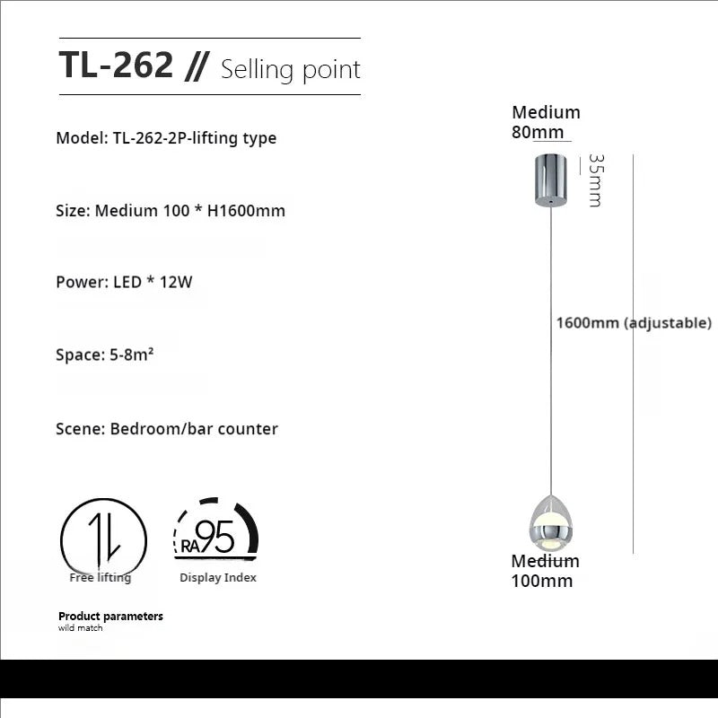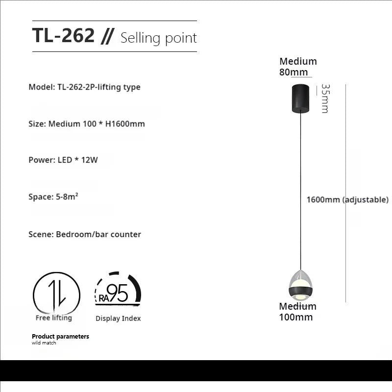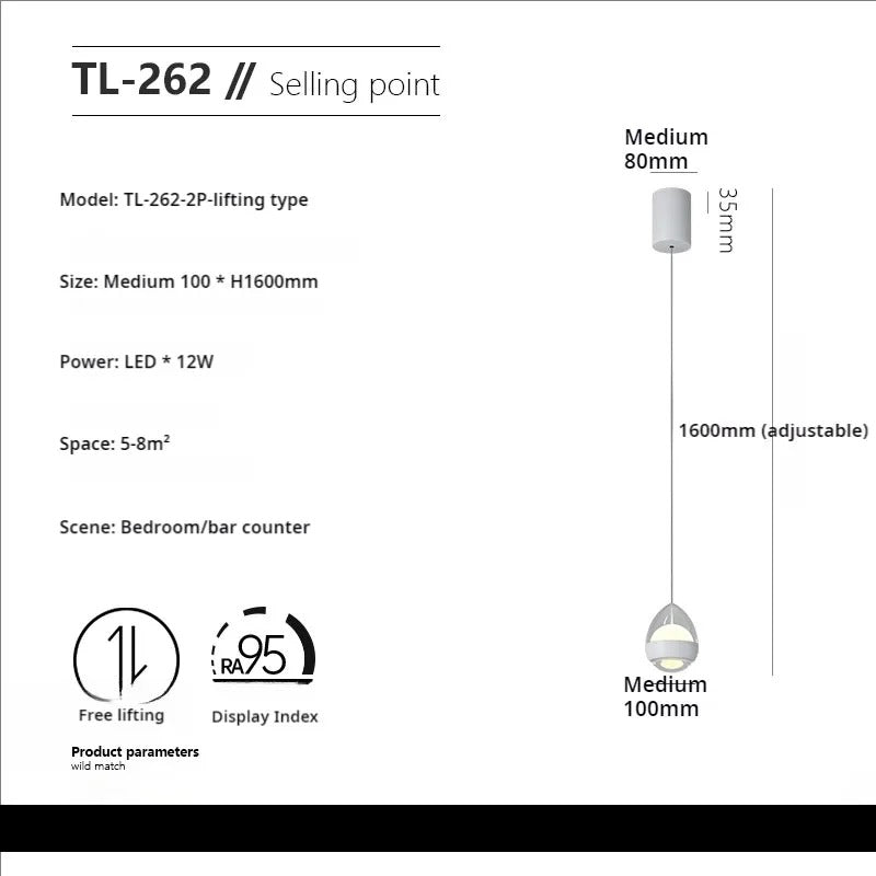 This hanging lamp is designed for small to medium-sized areas such as bedrooms and bar counters. The lamp's minimalist aesthetic and adjustable features make it a practical and elegant choice for targeted illumination. The simple design ensures it integrates seamlessly into various interior styles.