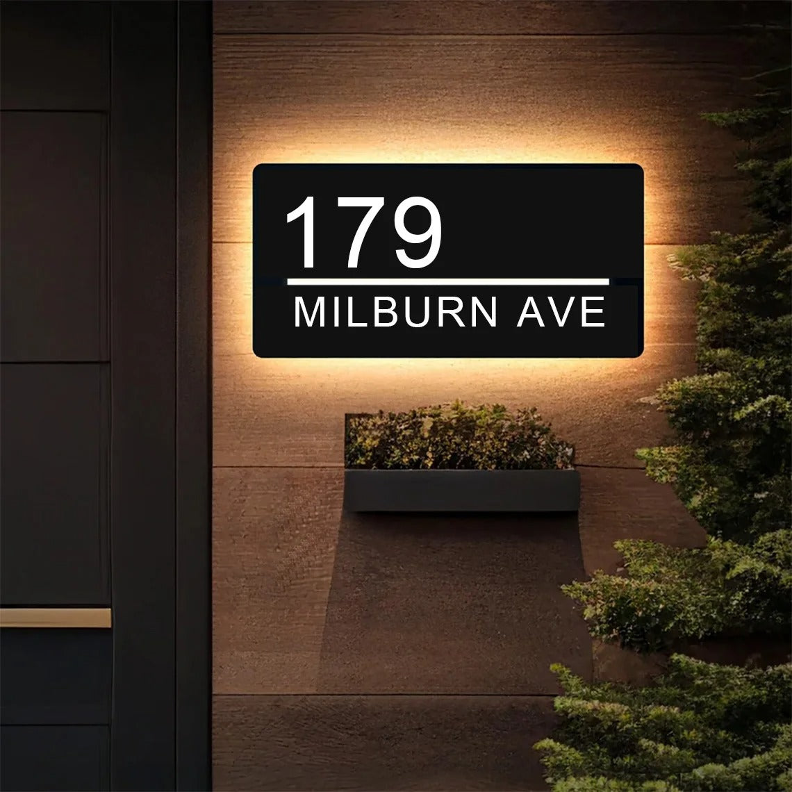 Modern Custom Stainless Steel LED House Number & Street Name Sign