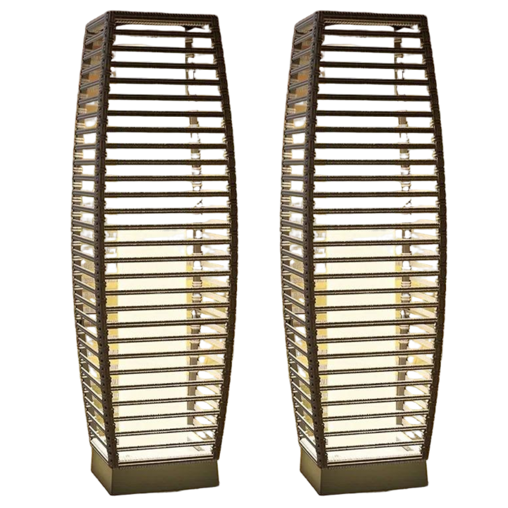 Modern Outdoor Solar Floor Lamp - Rattan Style Waterproof LED Light