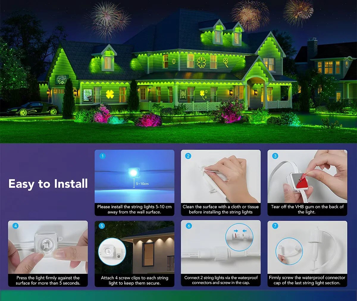- Flexible Installation: The lights are designed for easy installation, allowing you to securely attach them to your home's exterior.