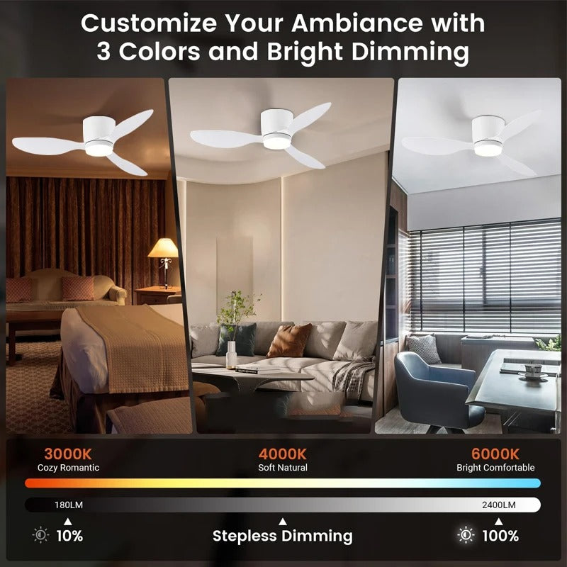 The SleekBreeze LED Ceiling Fan is designed to be a versatile and functional centerpiece for any room. It provides both ambient lighting and air circulation, all controlled by a simple remote. The fan's multiple speed settings and the light's adjustable brightness and color temperature give you complete control over your environment, helping you create the perfect atmosphere for any activity.