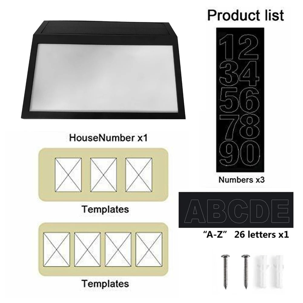 This solar house number light features a high-efficiency polysilicon solar panel and a super large 1200mAh 1.2V lithium battery, allowing it to light up for 8-10 hours at night after 6-8 hours of charging, even without direct sunlight. It comes with templates and mounting hardware for easy customization and installation.